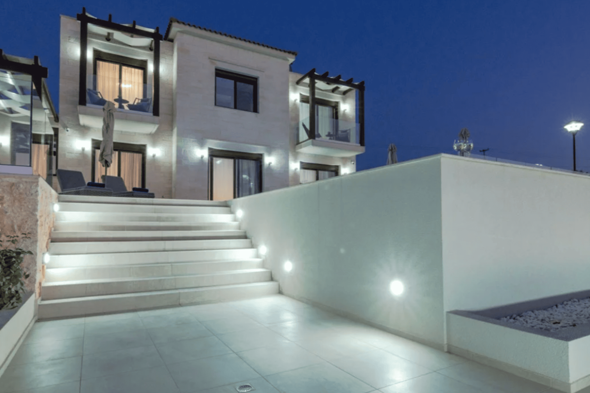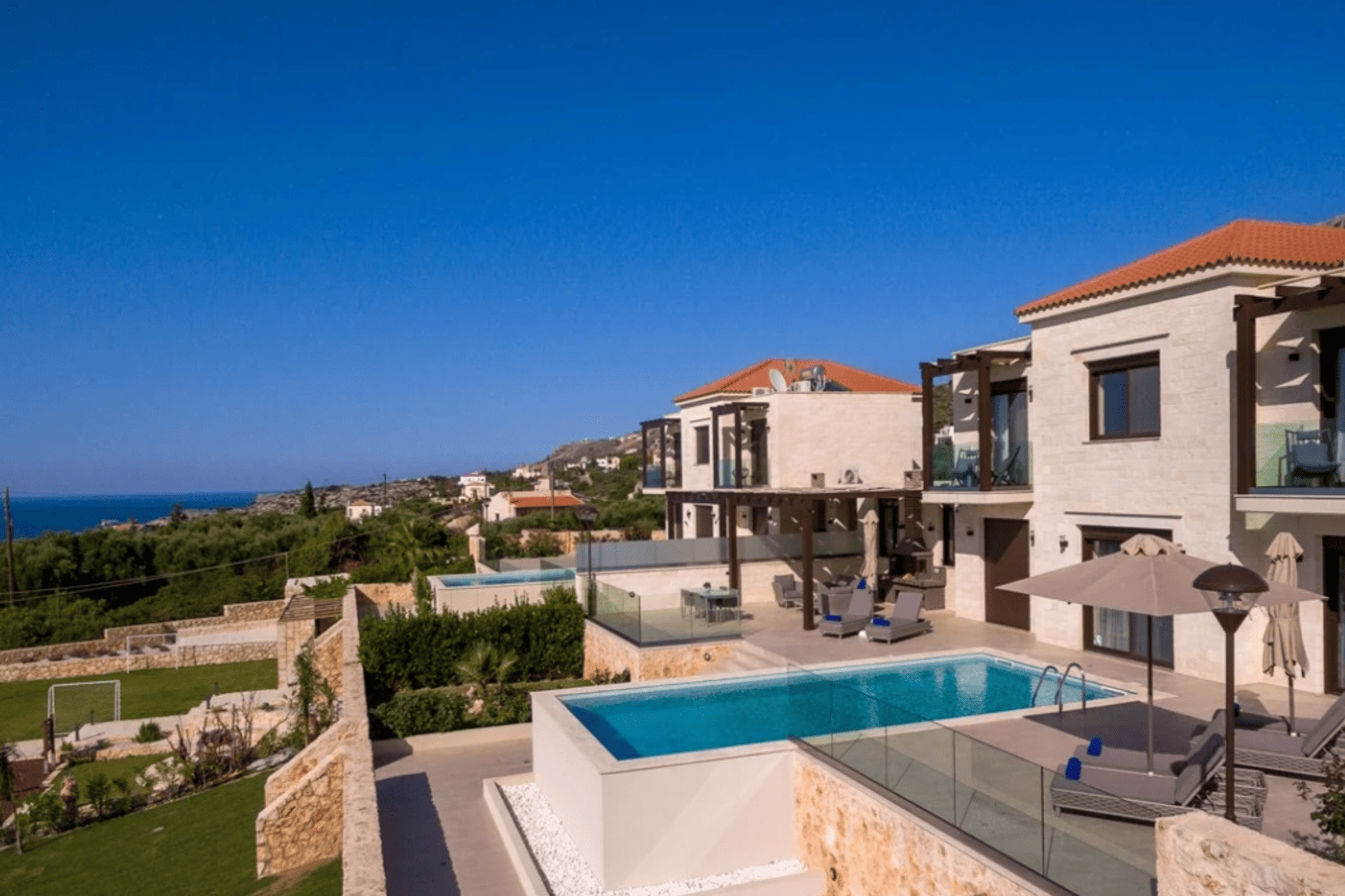 Πολυτελής διώροφη βίλα εμβαδού 203 τ.μ. στην Αλμυρίδα Χανίων, στο πιο προνομιακό σημείο της περιοχής. Είναι χτισμένη σε ελαφρώς επικλινές οικόπεδο εμβαδού 3.800 τ.μ. και προσφέρει ανεμπόδιστη θέα στον κόλπο της Αλμυρίδας, στο βόρειο άξονα του νομού Χανίων.