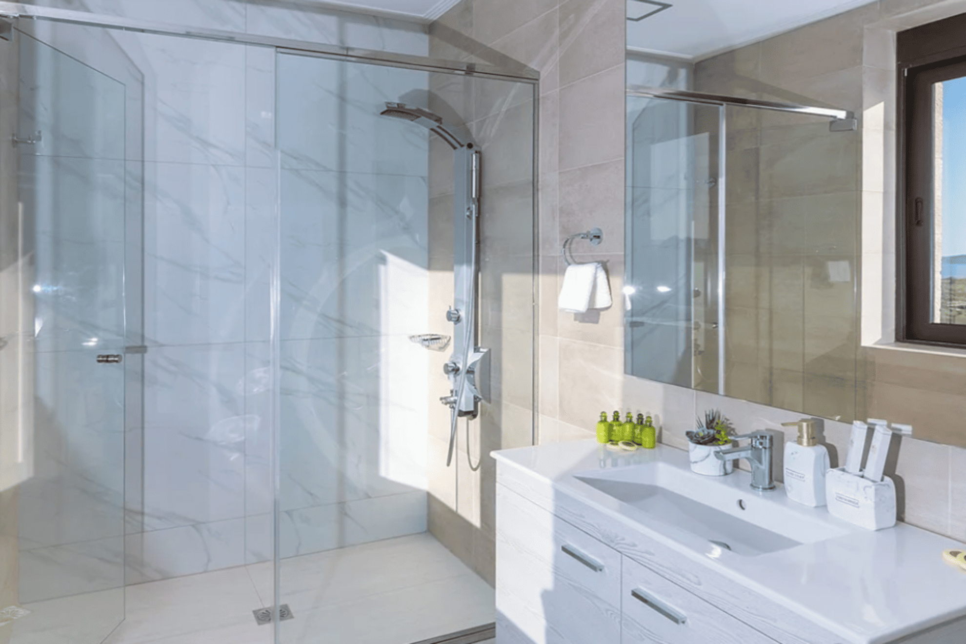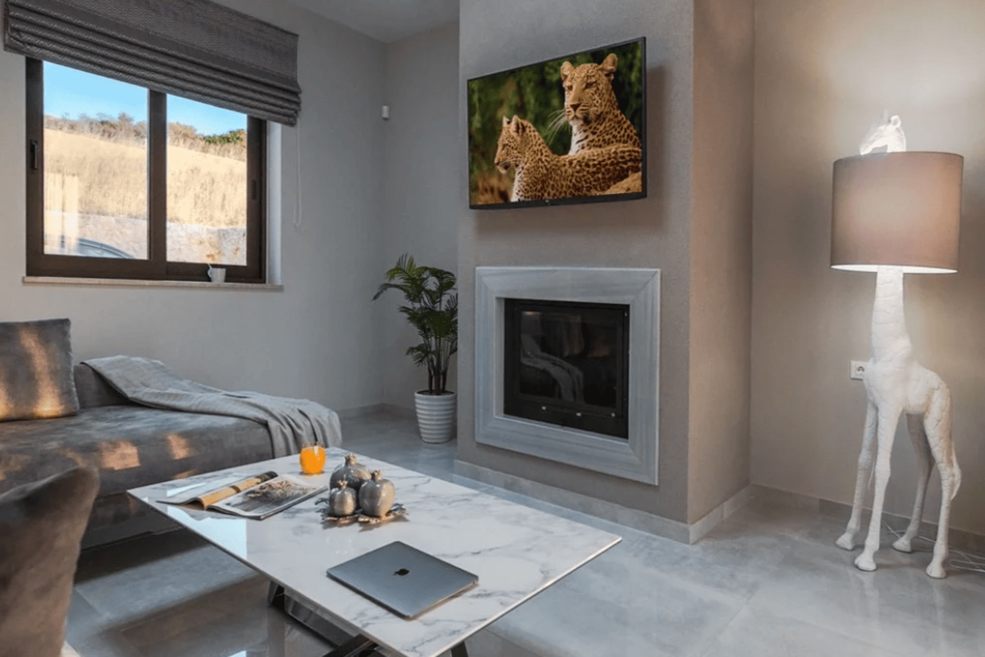 Η κατασκευή έχει γίνει με υψηλής ποιότητας υλικά, με προσοχή στην εργονομία και στη λεπτομέρεια. Το ακίνητο διαθέτει πισίνα και άνετους χώρους χαλάρωσης στις μεγάλες αυλές και τους κήπους του. Ο προσεγμένος εξωτερικός φωτισμός κατά τη διάρκεια της νύχτας κάνει τη διαμονή μοναδική.